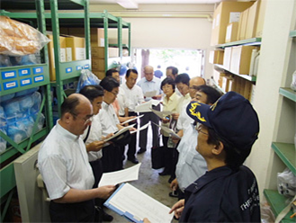 まず、29日は、災害時に避難所となる学校における防災備蓄状況等を視察してまいりました。最初に、区立金沢小学校で防災備品を備えている備蓄倉庫を視察しました。その中にある「マンホールトイレ の組み立て方法、使い方などの説明を受けました。