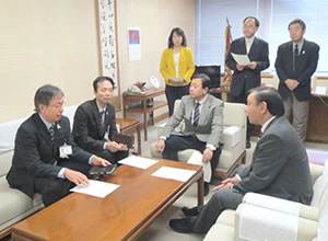 来年3月に中小企業金融円滑化法が終了することにともない、金融機関による貸し渋りや融資条件の厳格化が懸念され、中小零細企業からは不安の声があがっています。こうした企業側の不安感を払拭するため、区の相談窓口を設置するよう、橘正剛都議会議員(党板橋総支部長)と板橋区議団は、板橋区に緊急要望を行いました。