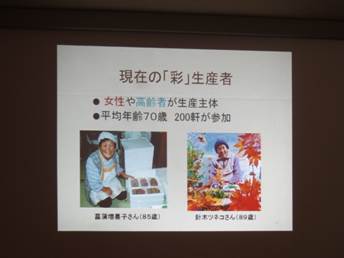 彩事業とは、もみじ・柿・南天・椿の葉っぱや梅・桜・桃の花などを料理のつま物として商品化をしたもの。これらの生産物は軽量で綺麗であり、女性や高齢者でも取り扱うことができる商材となっています。現在、販売額は約2億6千万円となっており、中には年収1千万円を売り上げする高齢者も存在します。