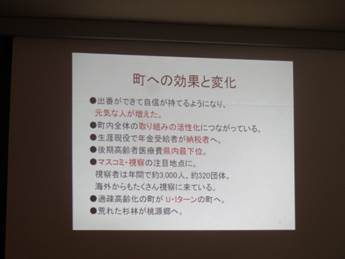 今まで非課税世帯だった方も、この事業参加で課税世帯になるなど、成果を上げています。何よりも高齢者の方々が元気に暮らしていることに注目しました。今後予想される、少子高齢化社会のモデルケースの一つと思います。本区におきましても、高齢者の方が健康維持の観点から、仕事ができる環境整備を推進して参ります。