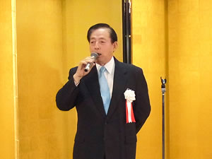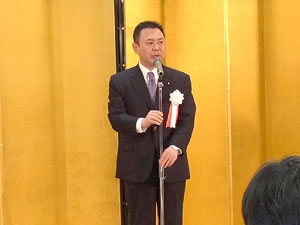 まず、党板橋総支部所属議員全員が登壇し、たちばな正剛総支部長(都議会議員)が主催者を代表して挨拶を行いました。昨年の区議会議員選挙におけるご支援に対する御礼や、東日本大震災に対する区議団による支援活動や、都議会における復興支援策の実現など、地方議員が率先して被災地の救援に動いたことなどを紹介しました。