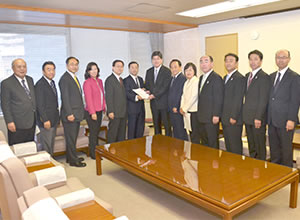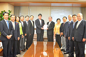 公明党板橋区議団として、坂本健・板橋区長に対して平成25年度予算要望を行いました。要望書は防災・減災の視点からのインフラ整備、地域防災対策、待機児童対策等々、折々に要望してきた項目も含め、区民生活全般に係る298項目の詳細な内容となっています。要望項目のうち新規は59項目で、前回(平成24年度予算要望)の要望項目のうち、約160項目の見直しを行いました。要望の取りまとめにあたっては、関係諸団体からのヒアリングや、区議団12名の全員が、現場で課題を探り、それらに対する政策を検討してまいりました。