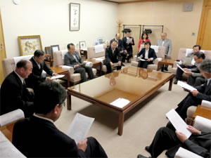来年3月に中小企業金融円滑化法が終了することにともない、金融機関による貸し渋りや融資条件の厳格化が懸念され、中小零細企業からは不安の声があがっています。こうした企業側の不安感を払拭するため、区の相談窓口を設置するよう、橘正剛都議会議員(党板橋総支部長)と板橋区議団は、板橋区に緊急要望を行いました。