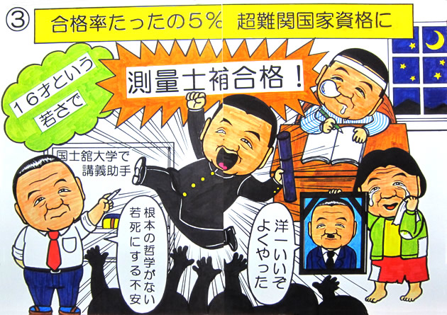 16才の時、群馬県立中之条高校農業土木科に入学。"母ちゃんに喜んでもらいたい!いっぱい親孝行したい!"と、本気で決意した、はぎわら洋一は猛勉強の末、平均合格率5%の超難関国家資格である"測量士補"に16才の若さで見事合格!真剣なる決意は大きな結果をもたらすという確信をつかむことが出来ました。