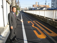 東新町宮前橋の北側で出合い頭の接触事故が多発するなど危険が伴っていた。事故防止と車の減速を促すため、路面が光に反射する「キララ舗装」と滑り止め舗装が施され、地域住民から喜ばれています。