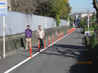 8 筑波大学付属養護学校横の グリーンベルト舗装整備、 歩行者レーンポール設置 ![]() |